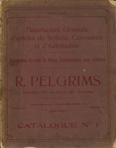 R. Pelgrims. Manufacture générale d'articles de sellerie, carrosserie et d'automobile. Fabrication spéciale de roues caoutchoutées pour voitures. Catalogue N° 1