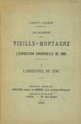 La Société de la Vieille-Montagne. L'exposition universelle de 1889. I L'industrie du zinc