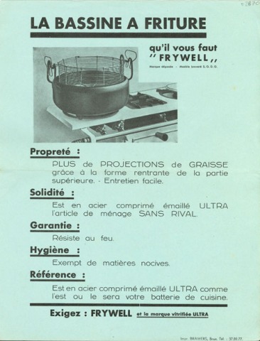 Laminoirs de Thiméon. Bassine à friture Frywell