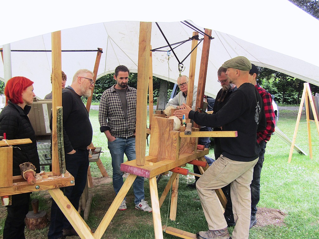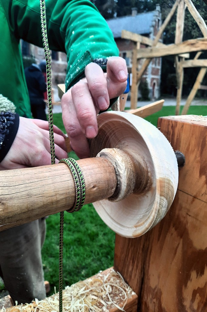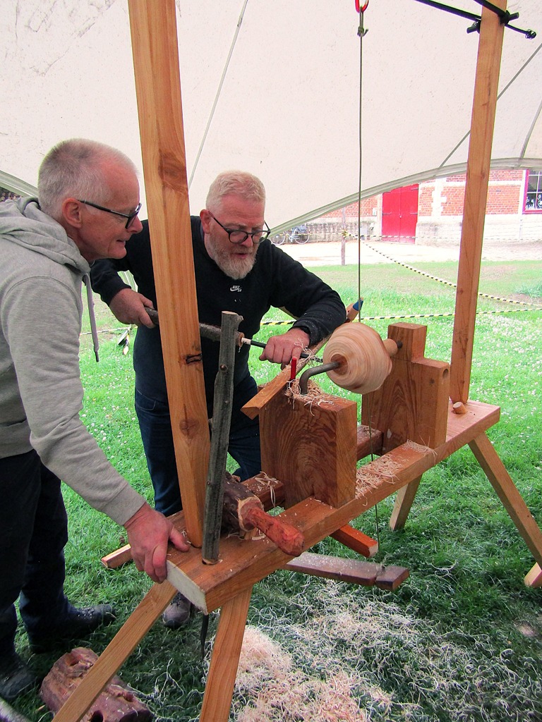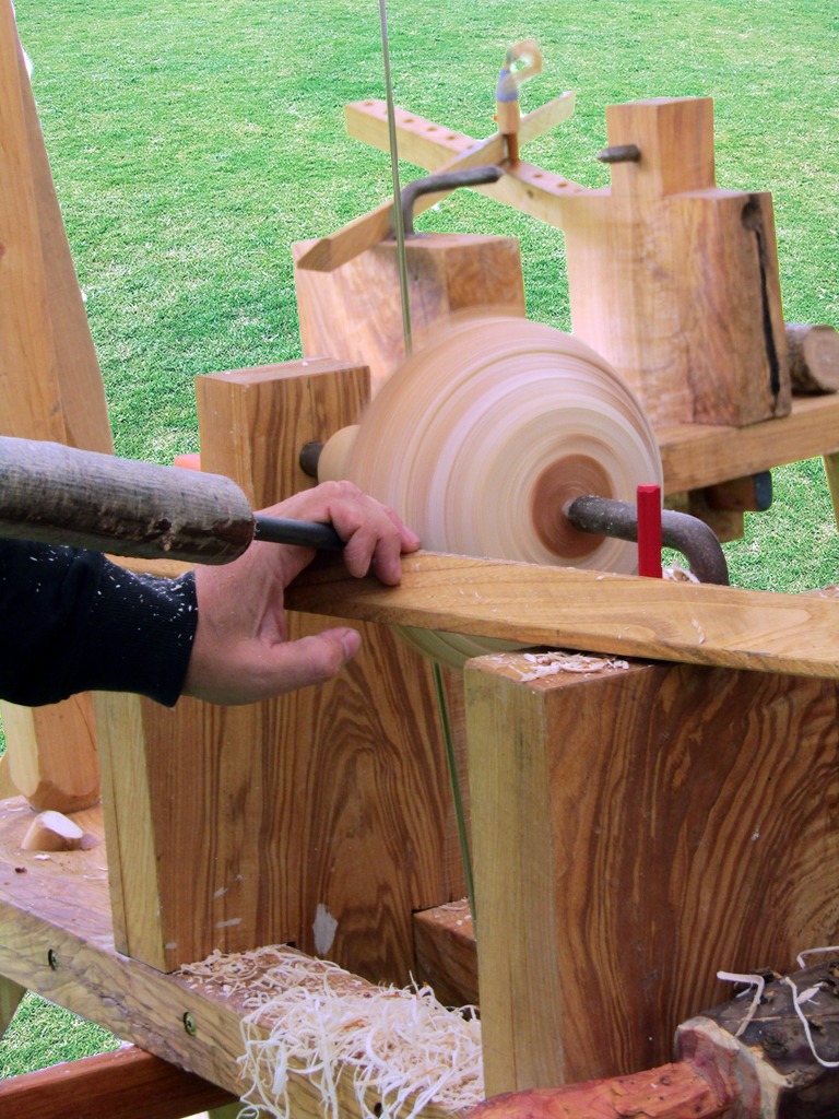 Maak kennis met deze traditionele met de voet aangedreven draaibank. Het verschil met een trapdraaibank is dat er hier gebruik wordt gemaakt van veerkracht. Die kan komen van een soepele tak, vandaar de Engelse naam pole lathe. In dit geval werken we met elastiek.
