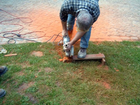 Voor het op maat afkorten van een kleine hoeveelheid stenen of het maken van wiggen kan je ook gebruik maken van een slijpschijf. Een veiligheidsbril is hier sterk aangeraden.