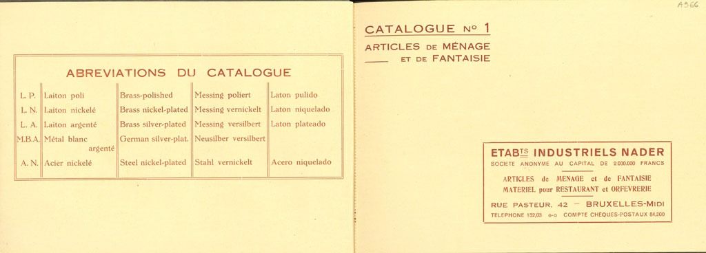 Etablissements Industriels Nader. Catalogue n° 1 Articles de ménage et de fantaisie, matériel pour restaurant et orfèvrerie