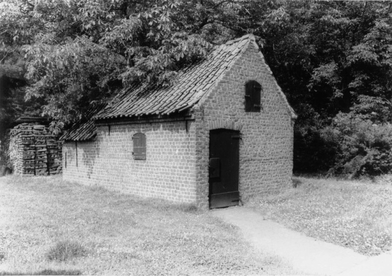 Hoeve met losse bestanddelen. Ten zuiden bakhuis van het samengestelde type met deur en zolderluik in de voorpuntgevel.