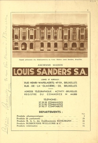 Ancienne maison Louis Sanders S.A. Prix-courant octobre 1934