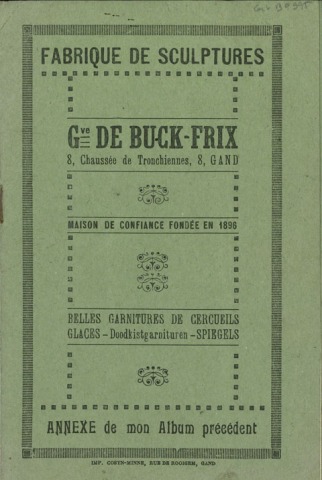 Gve De Buck-Frix. Fabrique de sculptures. Belle garnitures de cercueils, glaces = Doodkistgarnituren, spiegels. Annexe de mon album précédent