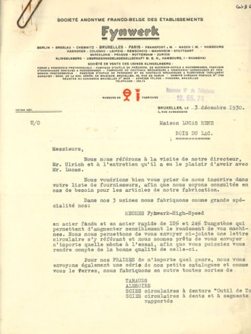 Société Anonyme franco-belge des établissements Fynwerk. 3 Décembre 1930