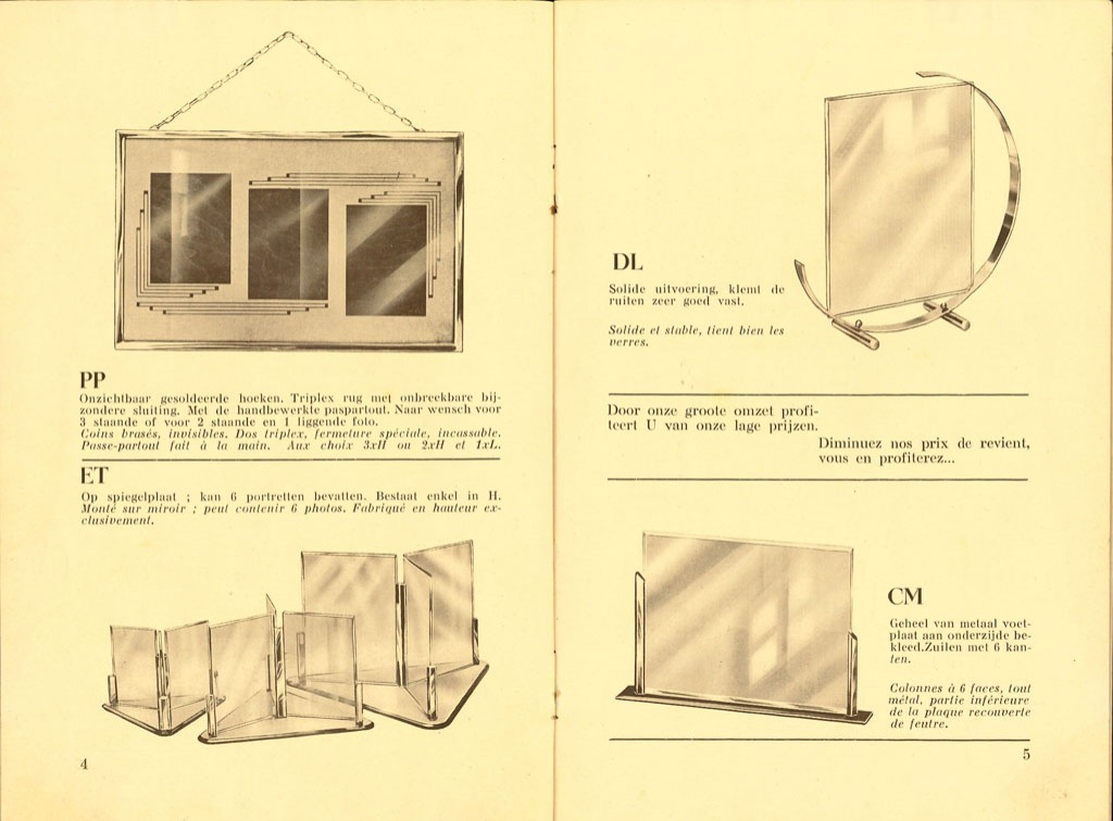 Etablissements I. Pape. Moderne fotostandaards en fotolijsten in verchroomde, matzilveren uitvoering enz.