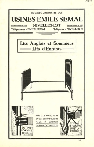 Usines Emile Semal. Lits anglais et sommiers. Lits d'enfants