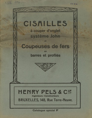 Henry Pels & Cie. Cisailles à couper d'onglet système John et coupeuses de fers en barres et profilés. Catalogue spécial F