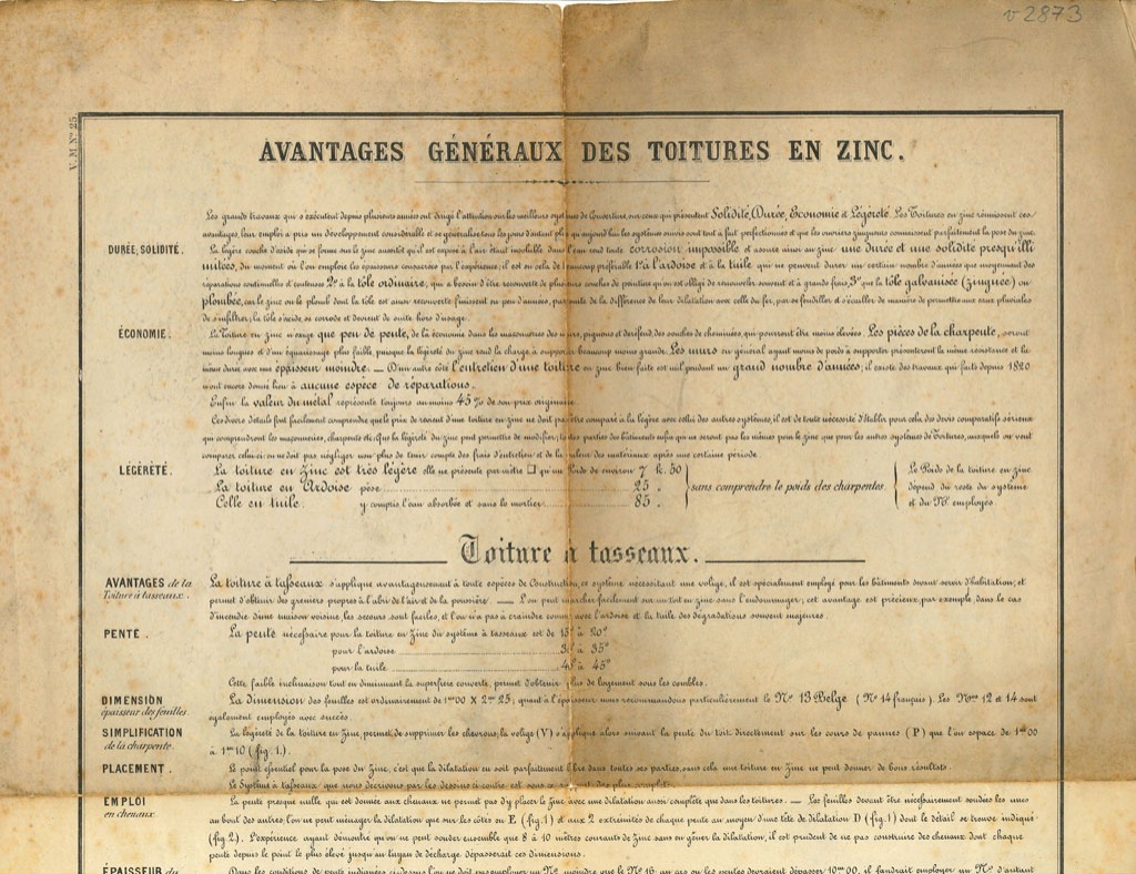 La société de la Vieille-Montagne. Avantages généraux des toitures en zinc