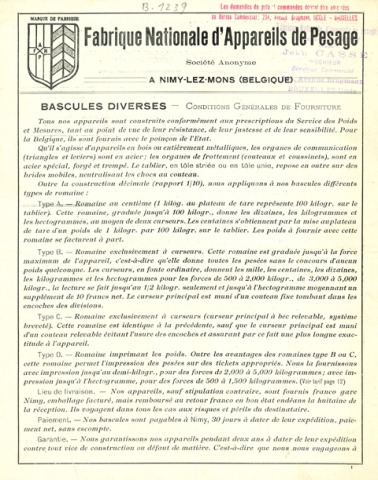 Fabrique Nationale d'Appareils de Pesage S.A. Bascules diverses