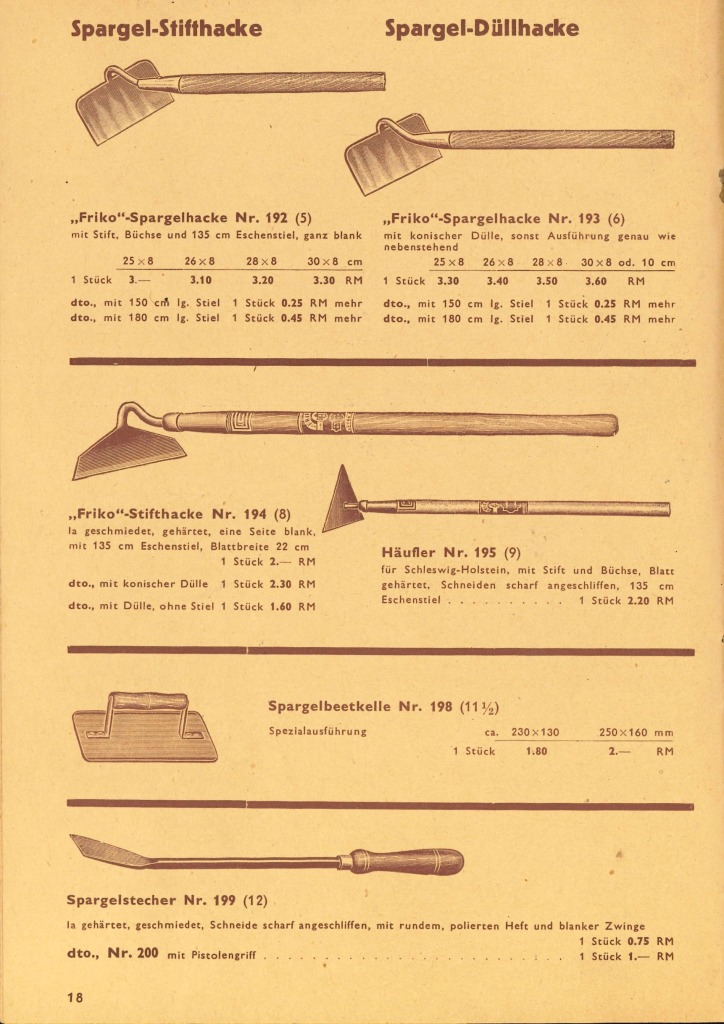 Commercial catalogue FRIKO Friedr. Kottenhoff. Fabrique d'outils. Freude bei der Arbeit durch Friko Feld- und Gartengeräte, 1936: 18.