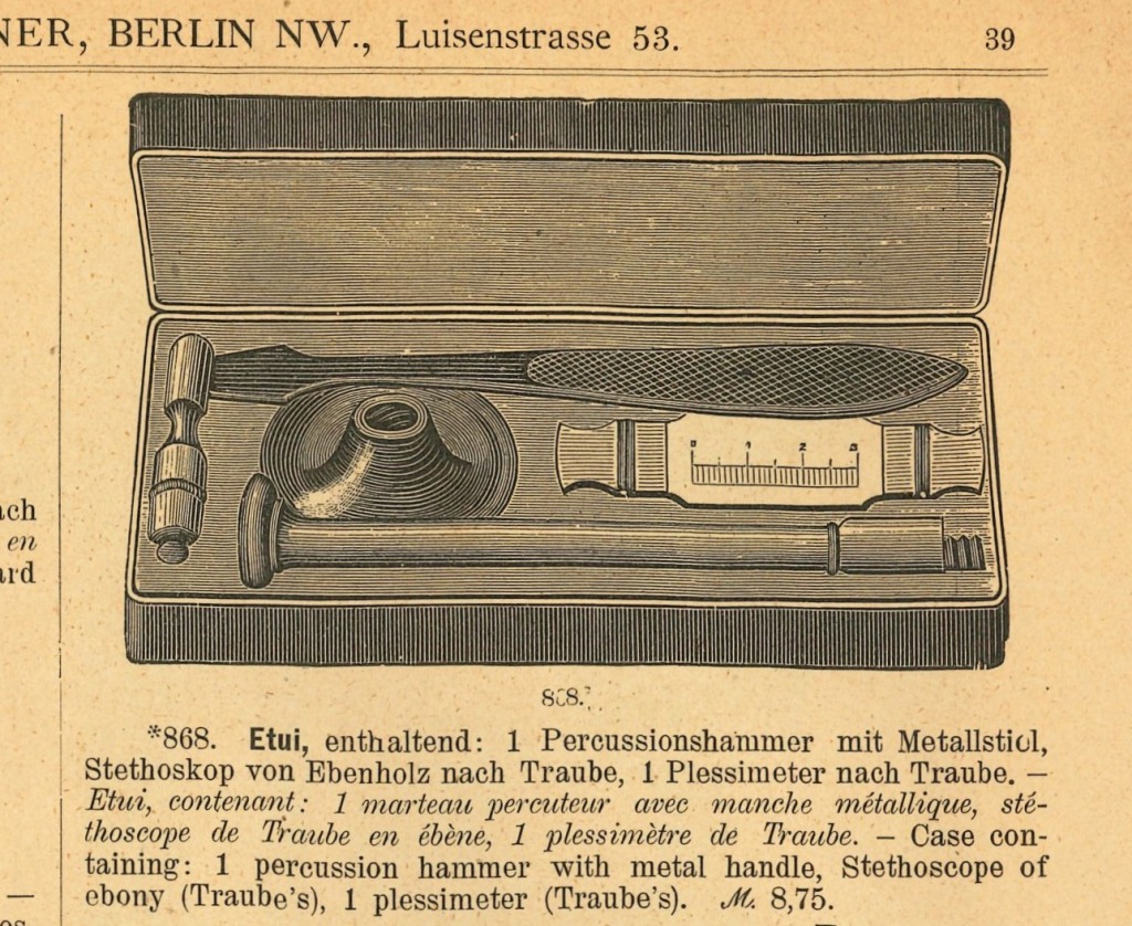 Marteau utilisé en combinaison avec un plessimètre en métal, ivoire, cuir ou caoutchouc.