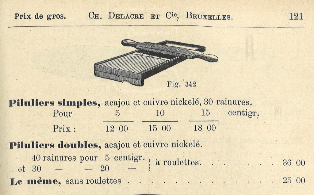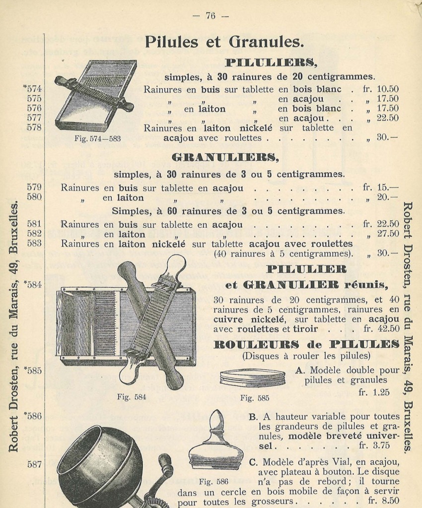 Catalogue commercial Robert Drosten. Catalogue des appareils & ustensiles divers pour la pharmacie et le laboratoire, droguerie, médecine, etc., 1899: 76.